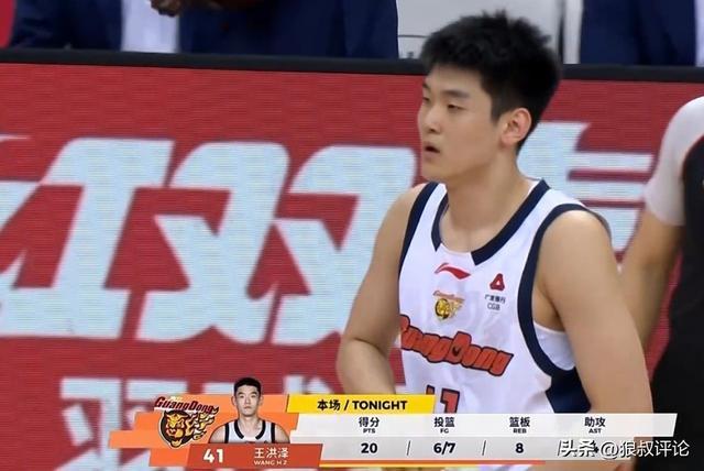 全场比赛,王洪泽出战29分45秒,投篮8中7,罚球10中8,得到22分8篮板4助攻2封盖,得分和篮板球都是创造生涯新高,加时阶段,冲击篮下完成暴扣,激情怒吼,帮助广东进一步创造优势。