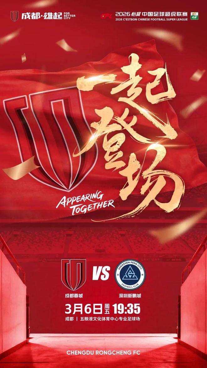3月6日,2026赛季中超联赛将重燃战火,成都蓉城坐镇五粮液文化体育中心专业足球场迎战深圳新鹏城。